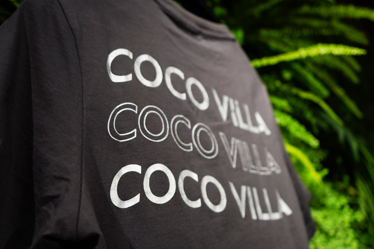左胸にCOCO VILLAのシンボルマークを刺繍し、裏面は大胆にロゴをあしらいました。